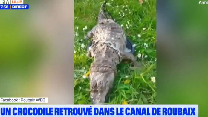 Ένας νεκρός κροκόδειλος, δεμένος με αλυσίδες και βαρίδια, βρέθηκε αργά το βράδυ της Κυριακής (19/4) από έναν ψαρά σε κανάλι του Ρουμπέ, στη βόρεια Γαλλία, σύμφωνα με τις τοπικές αρχές.