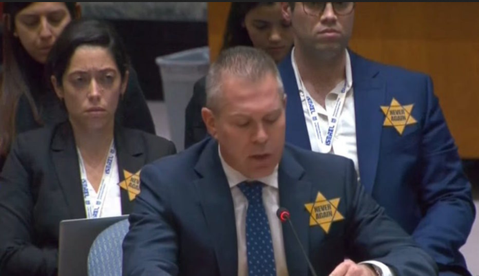 “Είσαι ντροπή” Θύελλα αντιδράσεων για το κίτρινο αστέρι του πρεσβευτή του Ισραήλ στον ΟΗΕ