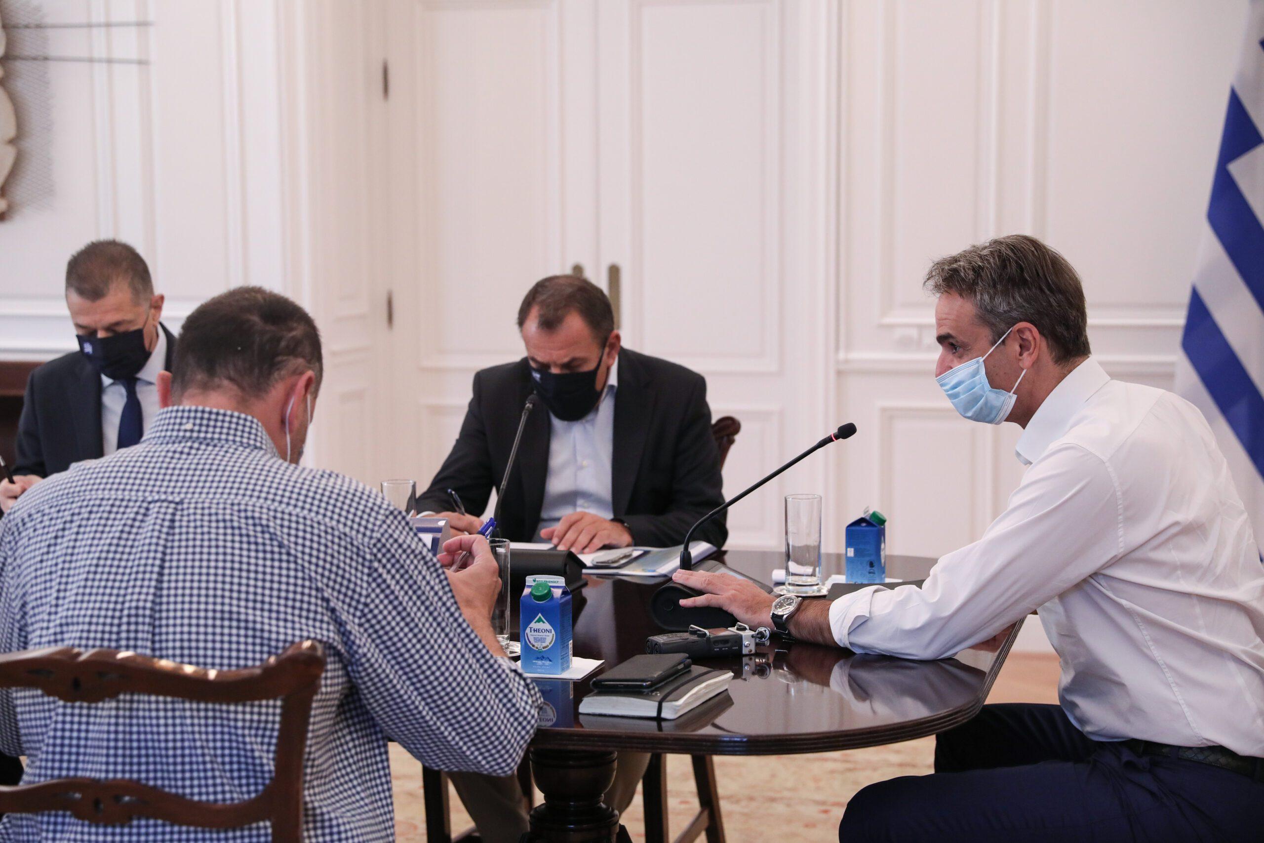 Η απόφαση λήφθηκε σε σύσκεψη υπό τον Πρωθυπουργό Κυριάκο Μητσοτάκη που πραγματοποιήθηκε σήμερα στο Μέγαρο Μαξίμου με τη συμμετοχή του Υπουργού Εθνικής Αμυνας Νίκου Παναγιωτόπουλου και του Αρχηγού ΓΕΕΘΑ Κωνσταντίνου Φλώρου.
