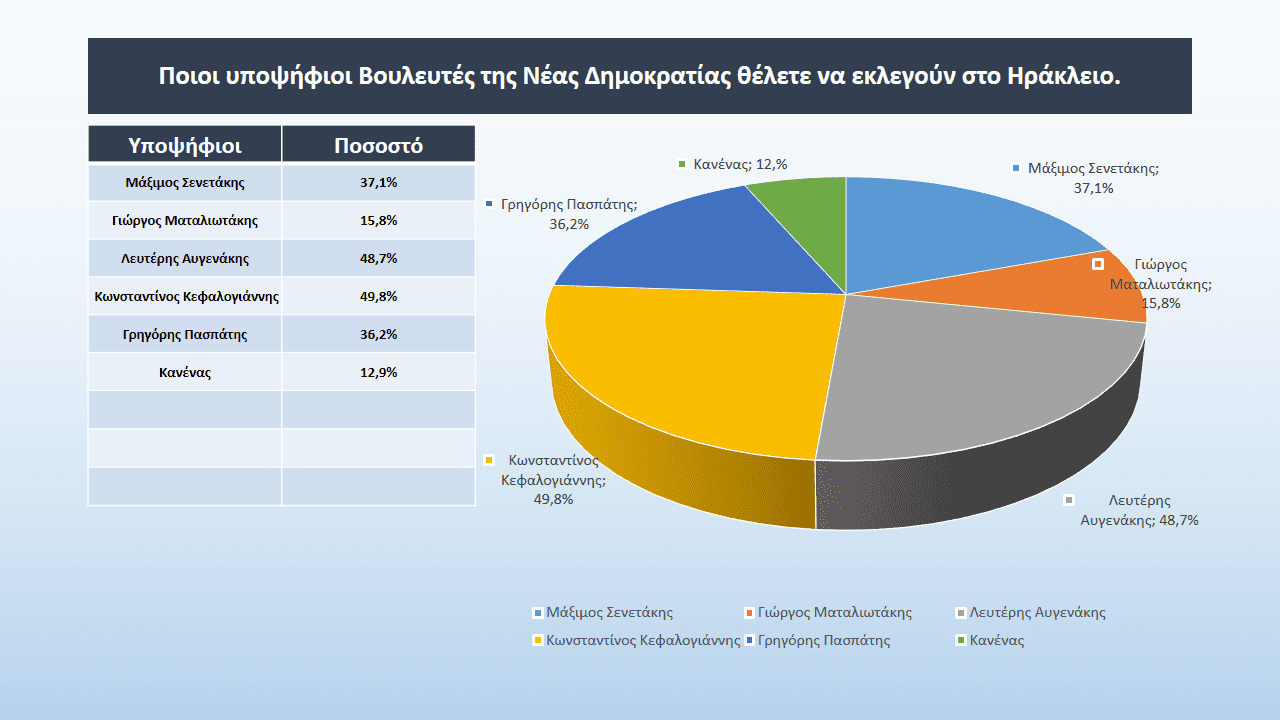 Αυτά διαπιστώνει η πρώτη δημοσκόπηση που έγινε στην Κρήτη, για λογαριασμό του ΕΠΕΝΔΥΤΗ (iependitis.gr), από την εταιρεία Infocall μεταξύ 24-28 Απριλίου 2023.