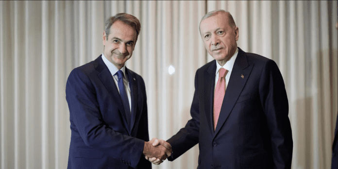 Μέσα σε μόλις 30 λεπτά ολοκληρώθηκε η συνάντηση του Κυριάκου Μητσοτάκη με τον Τούρκο πρόεδρο Ταγίπ Ερντογάν στην Νέα Υόρκη. Η συνάντηση πραγματοποιήθηκε στο περιθώριο των εργασιών της Γενικής Συνέλευσης του Οργανισμού Ηνωμένων Εθνών σε αίθουσα του διεθνούς οργανισμού.