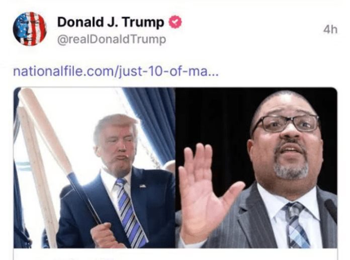 Με απειλές κατά του εισαγγελέα του Μανχάταν, Άλβιν Μπραγκ, επανέρχεται στο προσκήνιο ο Ντόναλντ Τραμπ, δημοσιεύοντας μια άκρως ανησυχητική φωτογραφία στην πλατφόρμα του, Truth Social.